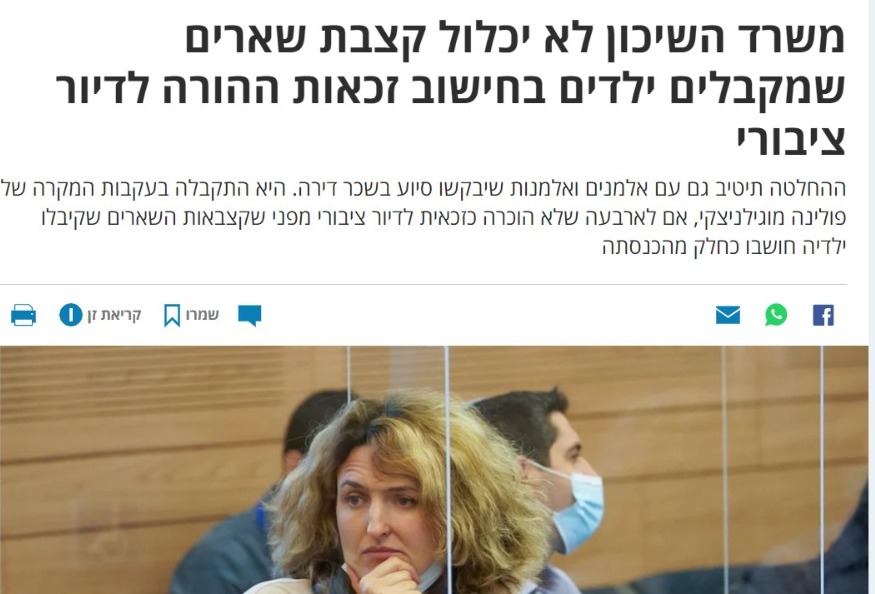 הכל התחיל כשפולינה, אלמנה חד הורית ל-4 ילדים פנתה לשותפינו המרכז לחינוך משפטי קליני באוניברסיטה העברית, וסיפרה להם שבקשתה לסיוע בדיור ציבורי נדחתה.